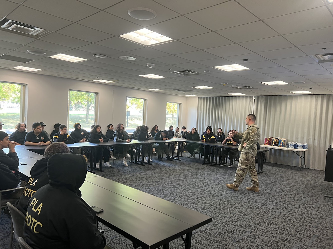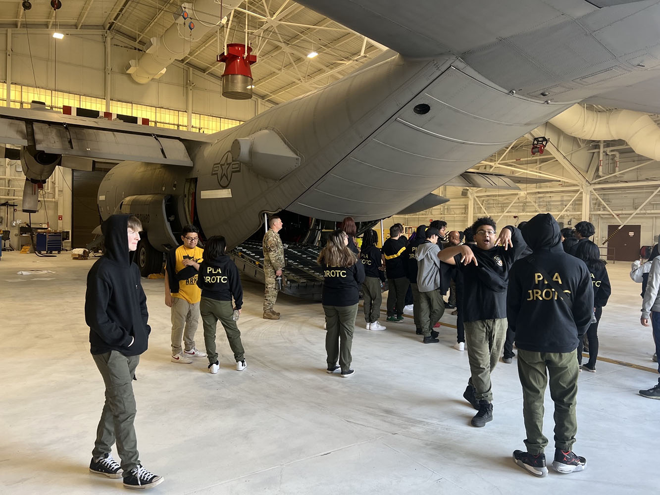 More than thirty Powell Leadership cadets toured the Air National Guard at Ft. Snelling. Not only did they learn about different career opportunities with the chance to ask questions, they also had remarkable experiences. Cadets had a great time learning about the mobile hospital, seeing the air crew prepare for flight and even get inside a C-130 and talk to the Maintenance Commander.