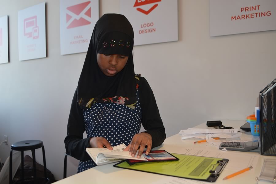 Businesses surrounded the open center, where MTS and Banaadir students had the entire floor to themselves, and students teamed up to run their specific business, from Deluxe, US Bank, Great Clips, to being government employees and broadcast company staff. “Please deliver this to the CEO!” hollered one very task oriented student.